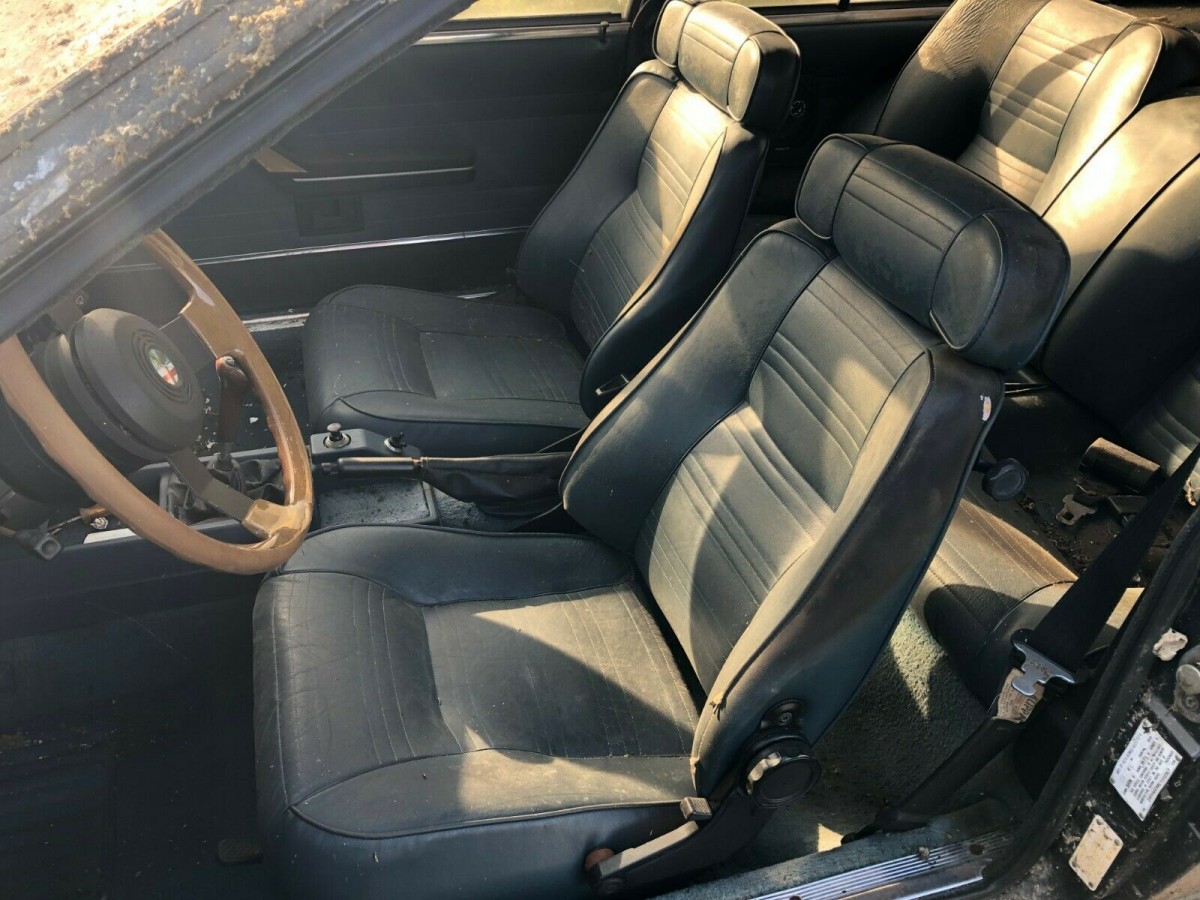 The GTV6 has one of the most beautiful engine notes known to man, and it’s a shame this one has fallen silent. You’re clued into the presence of the 2.5 V6 thanks to the hood bulge, and the rest of the body looks quite straight. It’s hard to tell whether there’s blue or black paint underneath the dust, but the good news is, there are few indications of major body damage to report.