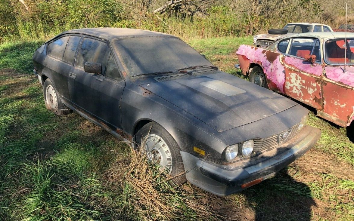 This 1982 Alfa Romeo GTV6 is part of what appears to be a large-scale cleanout of a property with multiple European and Britsh cars on the premises. The Alfa seen here is a non-runner that remains in surprisingly decent condition for its many years off the road. Even better, it’s selling at no reserve with bidding starting at a $1 – but ignore the Bellingham, Mass., location, as it is actually in Potterville, Michigan. Find the Alfa here on eBay with bidding at $1.25.
