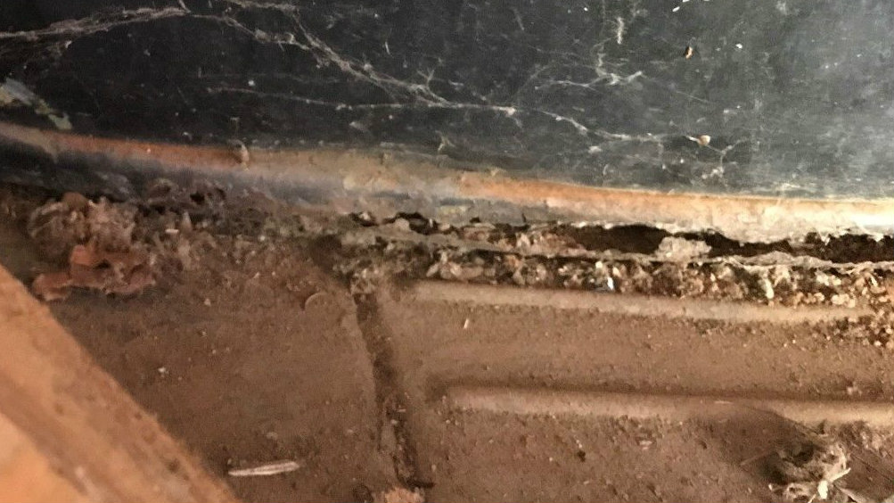 The seller tells us that there are only two spots of real rust–under both doors. I added this closeup so that you could see what one side looks like. Honestly, I think you’d be best off just cutting this out completely and starting over. I think I found replacement ones here, but I’d check for sure. At least they seem to be available.
