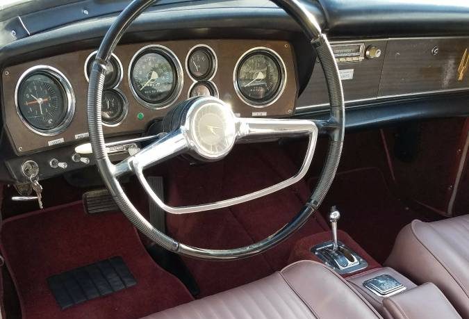 This rather European-looking dashboard houses a host of gauges, and echoes the two-tone exterior, recently repainted in the correct Rose Mist hue, according to the seller. Studebaker took a four-speed GT Hawk to Bonneville and hit 140 MPH on the fabled salt.