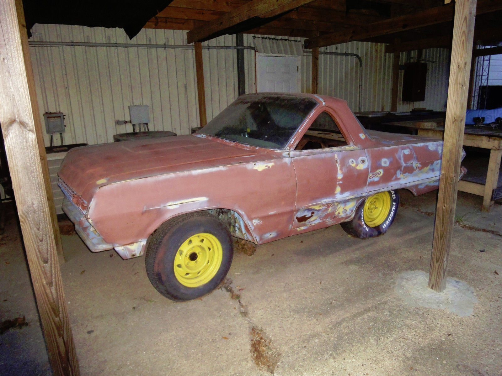 This engine is.. er.. well, it’s missing from the engine compartment but the seller has it. They have it listed as a 305 V8 backed by a 350 turbo automatic transmission. “When I bought the car 12 years ago, the guy I got it from would drag race it on the 1/8 mile strip in his home town. It was not real fast, but he had fun with it. I bought it and drove it around for a week or two and then we pulled out the engine and trans in our shop, we removed the front bumper, misc trim and I started to sand it down.” Have any of you owned or made a shorty? What are your thoughts on this one?