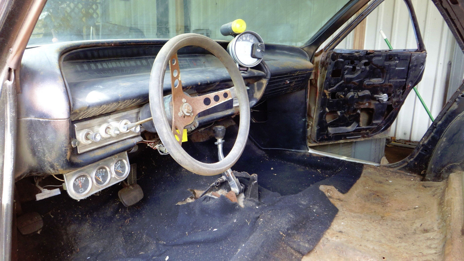 A little deep-cleaning of that carpet and.. cough.. wheeze.. The seller bought it in nicer-looking condition than the project seen here. Here’s a photo of how it looked when they got it. They started restoring it and ran out of time and/or interest. That’s not to say that they don’t know a shorty when they see one, here’s their great looking ’55 Chevy shorty wagon!