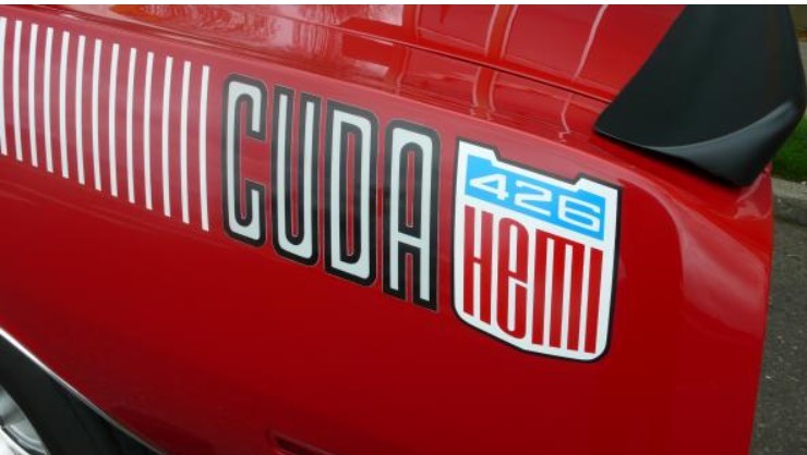We’re told the donor Barracuda used for the transformation was a rust-free car on which a quality red paint scheme was applied with white AAR strobe stripes. Instead of the AAR logo from that limited edition of the Barracuda, the “426 Hemi” script was used instead. The satin black accents on the hood, door tops, grill, tail panel, and spoilers are all freshly applied, and the fiberglass AAR hood was adjusted to fit properly. Period-correct Rallye wheels are on all four corners, with wider examples outback with Goodyear Polyglas tires all around.