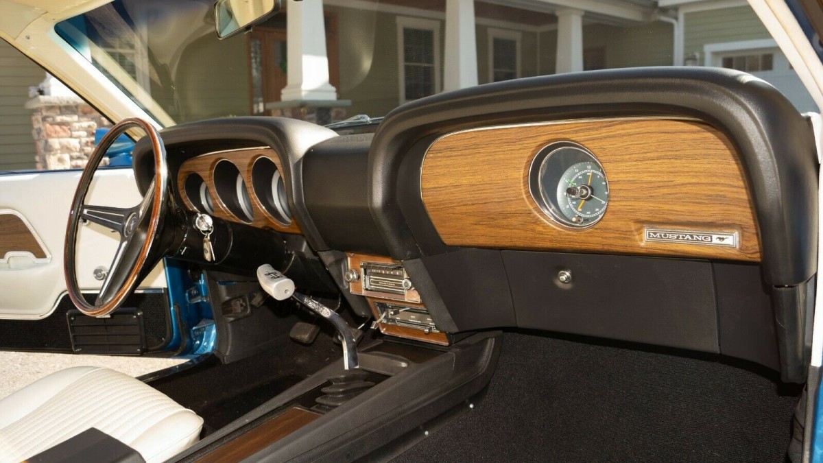 The interior of the Mustang bears all of the hallmarks of a classic that has recently been restored. Its condition appears to be flawless. There are no issues with the white trim, while the dash also presents beautifully. The restoration has been faithful, and the original radio/8-track player is still in its rightful place. Also, the Mustang was ordered with a clock, console, and a deluxe rim-blow wheel. You have to think that life inside this Mustang would be a pretty enjoyable experience. The owner makes the claim that this is a 1-of-1 car, but doesn’t indicate how he has come to that conclusion. However, he does hold a Marti Report for the vehicle, and this indicates that this is 1-of-19 that featured this paint and trim combination. Therefore, if you add in the other options like the Sport Slats, tinted glass, and the 8-track, the claim is conceivable.