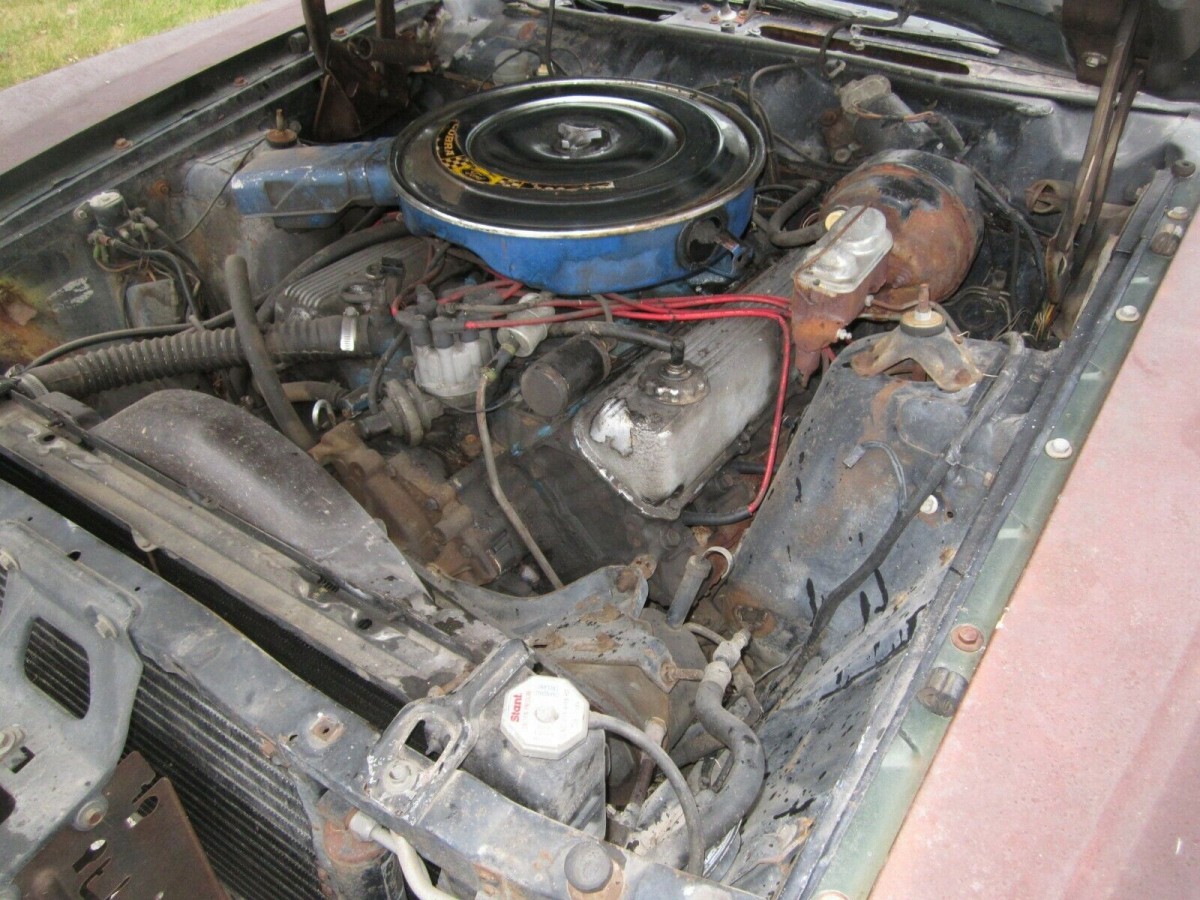 This underside shot is indicative of how solid this Ranchero is. The surface corrosion is relatively minor, and the penetrating rust is minimal. The seller supplies no interior photos and little information about its condition. We know that the original owner ordered it trimmed in green vinyl and equipped the car with air conditioning and an AM radio. It seems that the compressor for the A/C has been removed from the engine bay, but the rest of the system is complete. It isn’t clear whether the upholstery is in good condition or whether the crack-prone dash pad has survived intact. These items will require an in-person inspection to confirm that they are okay.