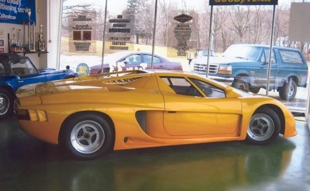 I’ve seen this car in the flesh about two years ago. I was brokering several cars for the son of a man who owned a well known local garage in the Springfield, MA area. They had a race team, ran the Camel series, among others. The shots where the car is in a show room is at that garage.