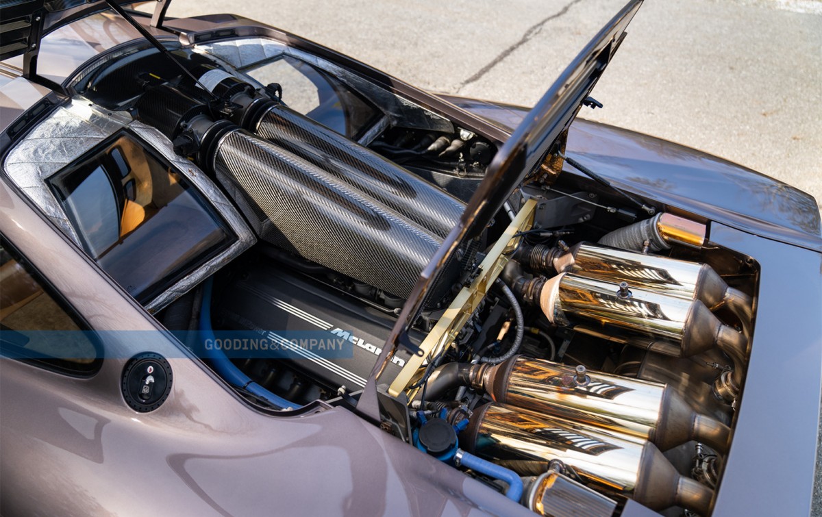 Murray’s vision of the F1 broke new ground in many areas, but the most obvious of these was cockpit design. It doesn’t feel right to use the word “quirky” when describing a vehicle of this type, but it is the word that seems to best suit this interior. Where most Supercars are strictly two-seaters, the McLaren has space for three. This was achieved by placing the driver’s seat in the vehicle’s center, with a passenger seat on either side and just rearward of this position. This configuration provided the driver with the best level of peripheral vision and also offered a driving experience that was as close to imitating that of an open-wheel racing car as was legally allowed on our roads. The interior of this F1 is as faultless as you might expect in a car that has so few miles on the clock. The two-tone brown leather upholstery shows no evidence of wear or problems, while the carpet and dash are just as impressive. The attention to detail is incredible, and you will struggle to find any steel components inside this McLaren. The seat frames and dash are constructed from composite materials, while the pedals are machined from titanium. McLaren even commissioned Kenwood to develop a lightweight stereo for the F1 so that occupants could have in-car entertainment without compromising weight or performance. One nod to luxury is the inclusion of air conditioning. That is probably a blessing for the driver, as they are located about as far from the windows and fresh air as it is possible to get in any road car.