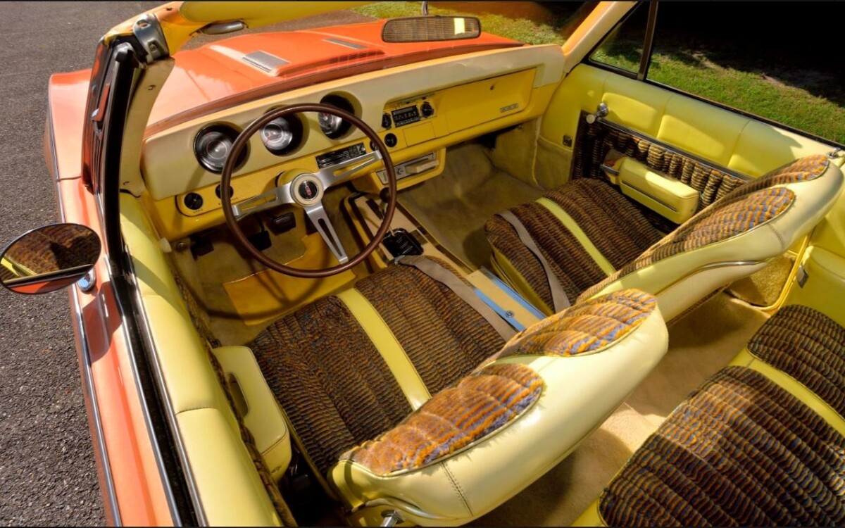 Inside, GM-Oldsmobile executed the custom interior which features yellow and brown trim, and things in there are still looking pretty good. The power convertible top is said to be original, and it’s equipped with a glass rear window, which is claimed to be rare. There’s also an AM/FM/8-Track radio, power windows, power antenna, and a vacuum-operated trunk release.