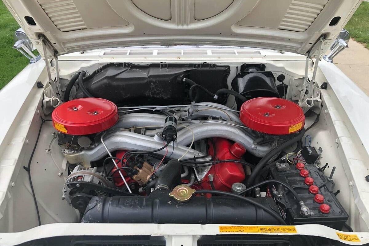 Amid this misery, Dodge produced 10 Polara sedans with the 383 Long Ram Induction engine option, with overlapping intake manifolds and two air cleaners sitting atop two 4-barrel carburetors. We don’t know if they were all built with an automatic transmission as is the case with this Polara. The seller has documentation that will attest to the car’s rarity and states that only one of these vehicles is left in existence and the car here is it.