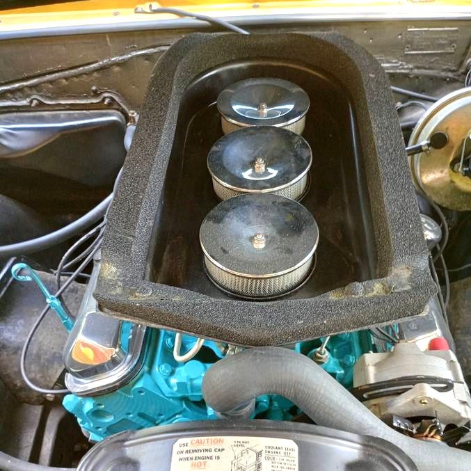 The GTO had this exact color scheme, with tri-power, factory air, and a 4-speed. When I inspected it in the school parking lot, it had a radio antenna… but the dash opening was empty. She was waiting for an AM-FM radio that the dealer had ordered separately. She also said there was a spare quart of the special gold paint supplied with the car.