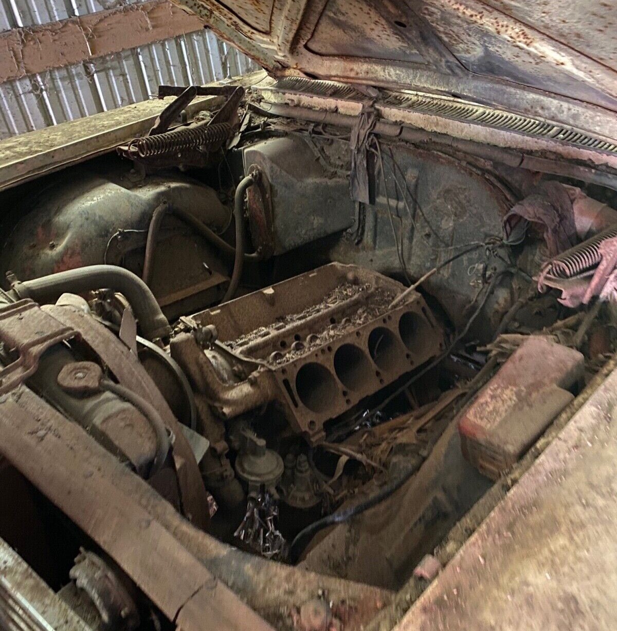 The photos show the car both inside the structure and out in a field with a variety of parts surrounding it. There is no indication if the automobile is complete, especially the all-important engine to verify its rarity. Pictures provided only show parts of the Ford and don’t zero in on where the biggest problem lies, the body back of the rear window. Rust has practically consumed it and the sheet metal may be hanging on by a thread.