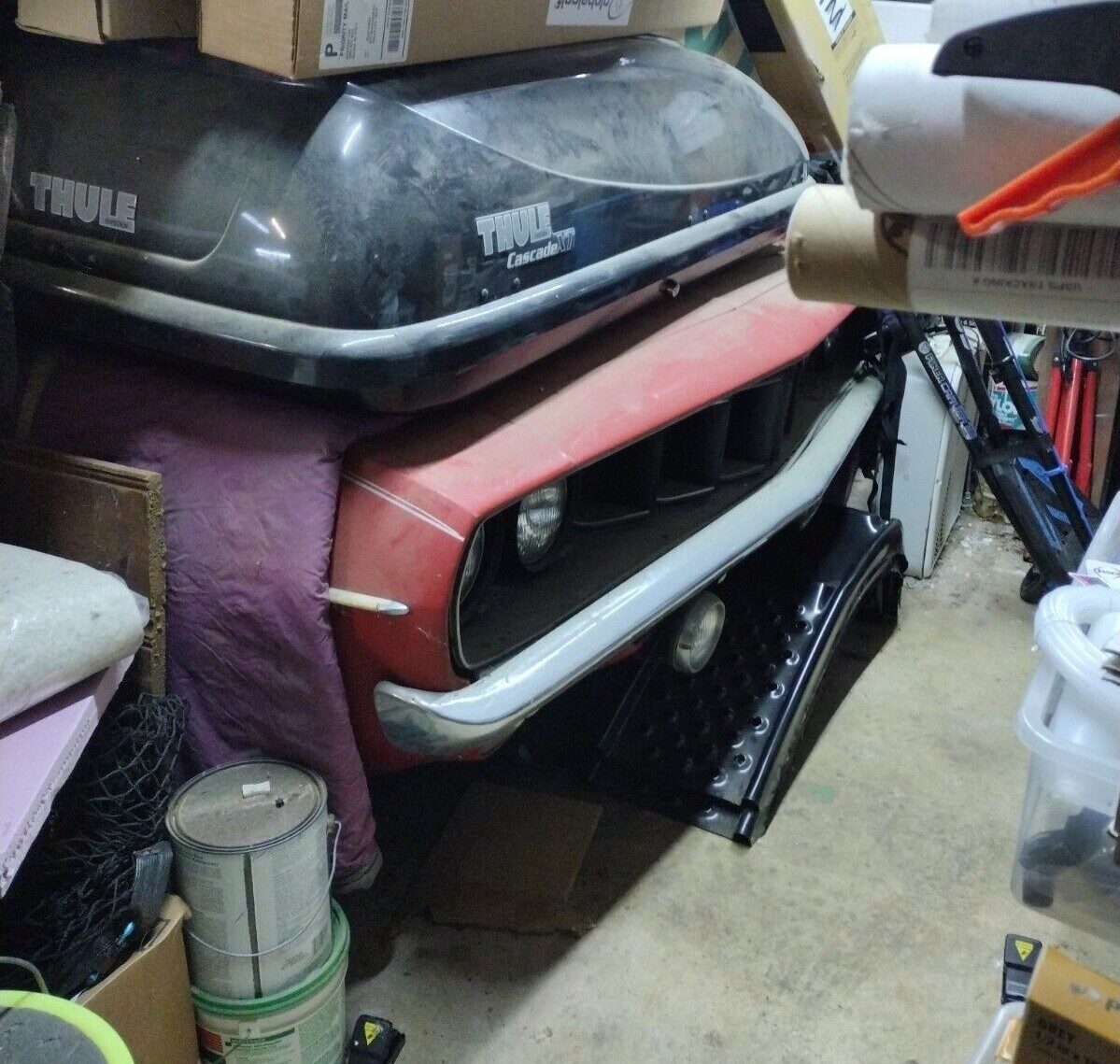 Yet in a neighboring backyard, away from the problem, was a Plum Crazy Cuda!