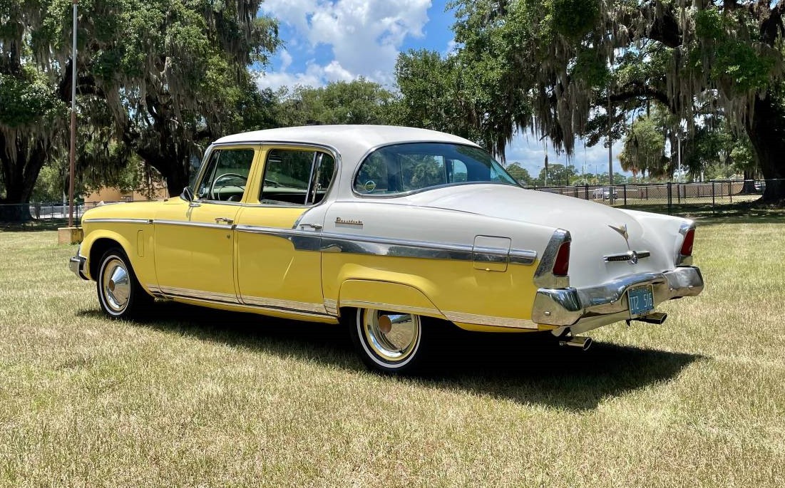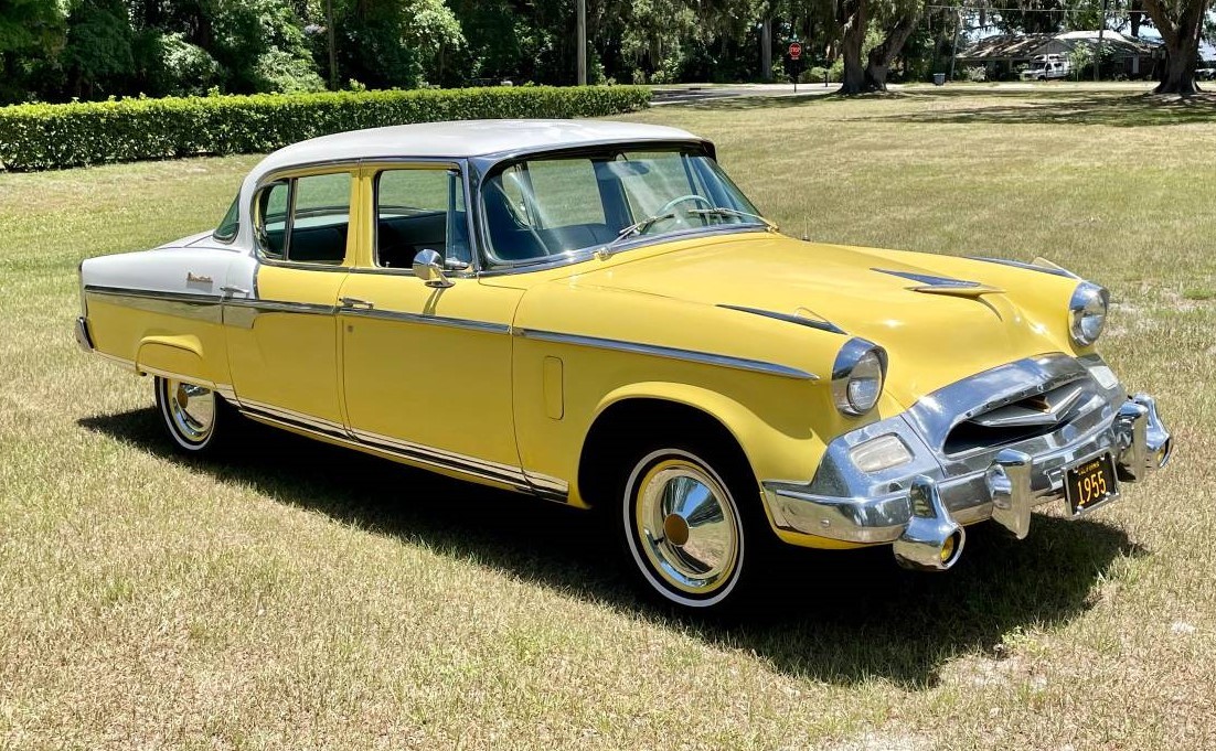 I had a 55 President Deluxe which I bought in ’79 while in college, about 45 years ago to the day. I learned that was the low end Prez. The deluxe two-tone scheme had the break at the bottom of the rear pillar, so the deck lid and rear quarter were body color. This is a top of line State. The biggest reason the Deluxe is rare is because as I recall from my research back then one could get a loaded Commander for $50 more, or go up to the State for maybe $250. The President revival alone just wasn’t enough, and even in ’55 the uncharges were reachable so folks passed on the Deluxe. Kept and restored mine, discovering and returning to the original dark blue top over light blue body. Alas, engineering study took time and I met The Girl before getting to the interior. I thus passed on my Deluxe, too and sold it to a distant cousin to finish. I remember the little 259 V-8 would move that thing along better than you’d think, too.