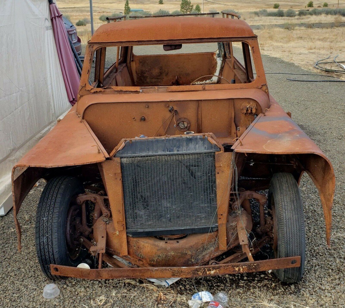The seller was not only able to find this station wagon, but also a sport wagon which is in much better condition and now the focus of his attention. Out of just 11 of the station wagons he says are on the Powell Registry, only three of them are known to be driving examples. This relic was in a junkyard (poetic, huh?) in Napa, California that caught fire, but much of the Powell was saved. But it’s very rusty and missing its hood (the seller says you can make a pattern from his other Powell). All the glass is gone, but since it’s flat glass, it would not be hard to replicate. Adding to the misery, the doors are hard to open, the wiring is all gone (burned up?), the engine is seized, and the status of the transmission is an unknown. But an extra Plymouth (maybe Dodge) long-block with the head removed is part of the deal. For a look at what a finished Powell looks like, check out this one we covered a couple of years ago in Barn Finds.