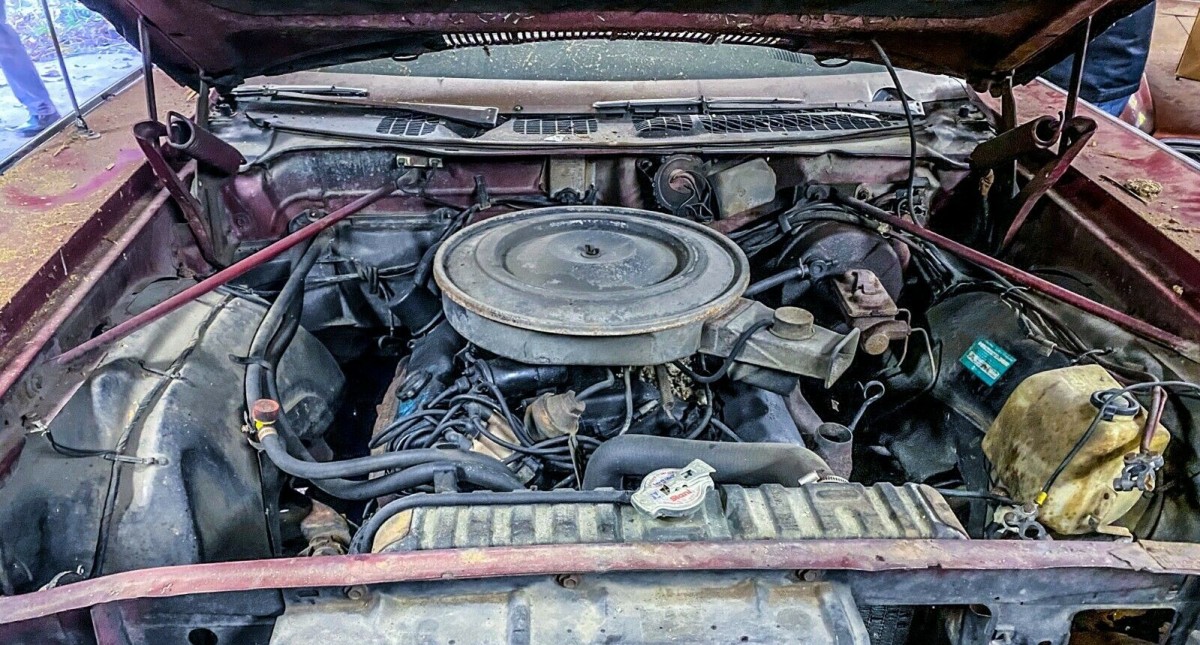 Little is known about this Chrysler, but we’re guessing it’s part of a collection that was found in a rather dirty and unorganized old garage. A 1970 Plymouth Road Runner appears to be one of several other dwellers in this space. The dirty burgundy paint doesn’t look bad, but there is rust popping through at the bottoms of the front fenders, rear quarter panels, and perhaps the doors. That means the undercarriage should be given a careful evaluation.
