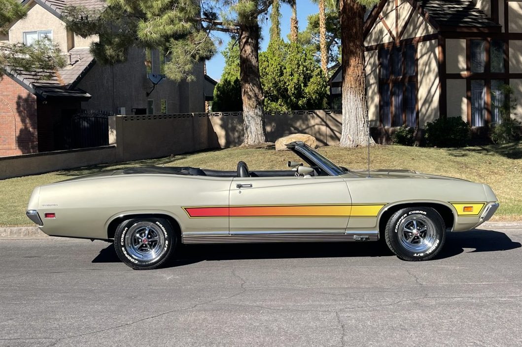 The Torino and Montego always were a special, almost Italian design. This is the best looking US convertible in the period IMHO. I agree the decal is wrong ( it hides the side shapes) .