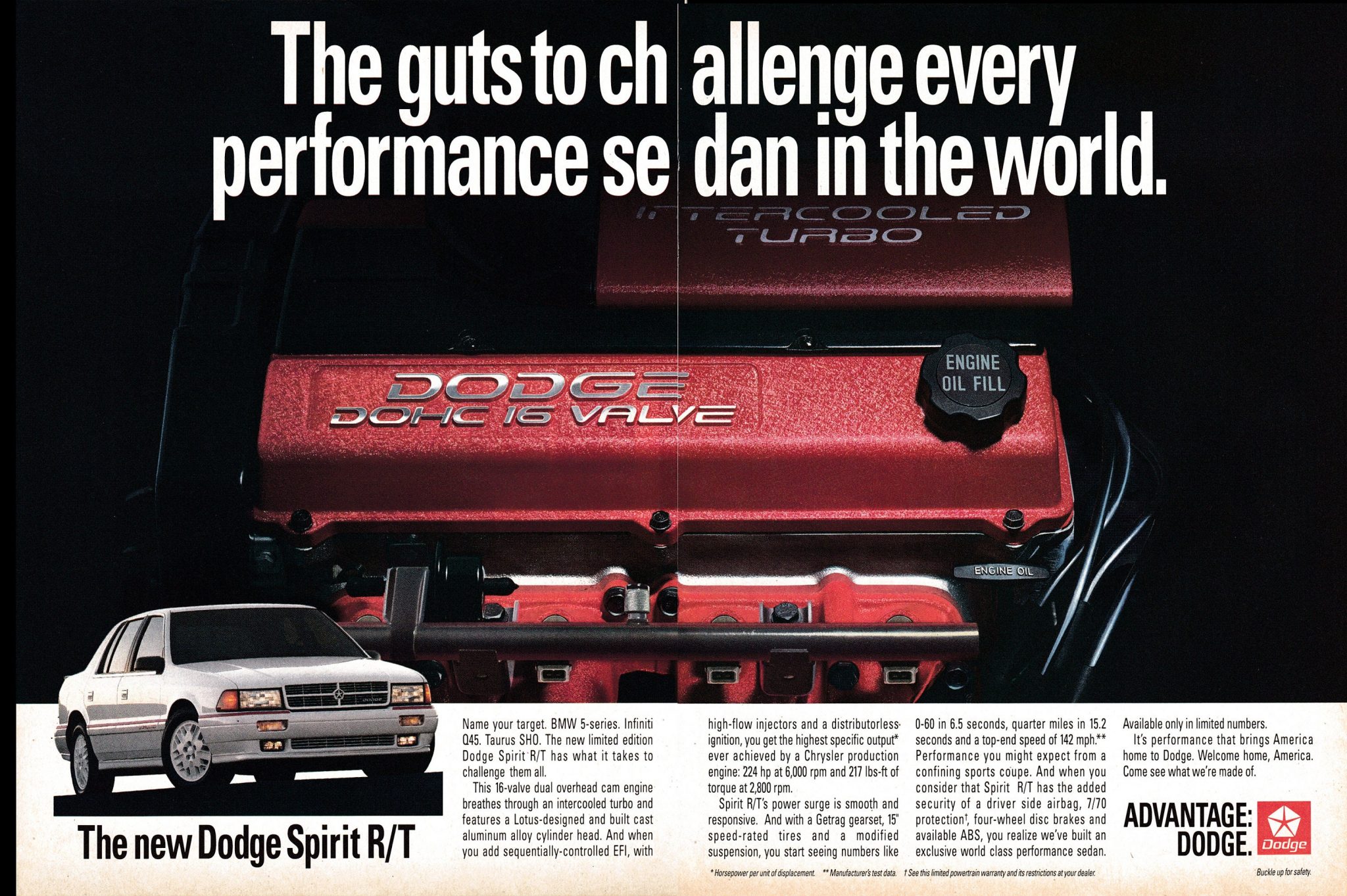 All 1208 Spirit R/Ts from 1991 were built in Mexico, which didn’t stop Dodge from calling it “the fastest sedan made in America.” After logging over 200,000 miles on a modified, boosted FWD sedan, a 2002 Buick Regal GS, I was ready for a naturally aspirated RWD V8 for simplicity and traction that benefits from weight transfer at launch. That said, if this thing really makes over 300 HP, sticky tires and a Ninja-like touch on the pedals will embarrass a host of costlier and less practical modern performance machines.