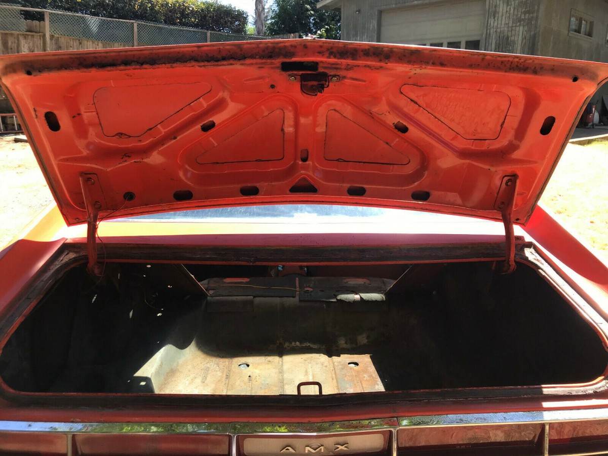 This AMX certainly does not qualify as rust-free, but most of that appears to be surface rust. The trouble spot looks to be the trunk lid and the seller is providing an extra with the deal. We’re told the floors, rockers, trunk, quarter panels, etc. are pretty good. The seller is an accommodating fellow and includes quite a few undercarriage pics while the car is up on a lift. That being said, while the paint is original, we’re also told that some bodywork was previously done on the driver’s rear quarter panel and the passenger’s front fender.