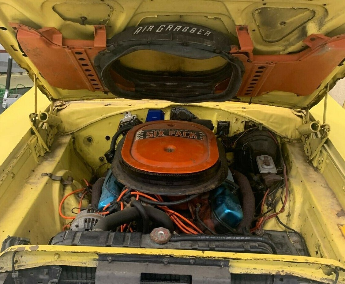 Super Bee production in 1970 was 15,506 units and – of those – only 1,268 copies would have the big-block with a 6-pack (it produced 390 horsepower). A few others were also ordered with the 426 Hemi (at 425 hp). So, the relatively low production numbers put the Super Bee 6-Pack in rare company today. We’re told this one is numbers matching except for the automatic transmission. The car’s build sheet has survived along with the cowl tag to help verify authenticity. The automobile is said to run well but stopping is not its strong point.