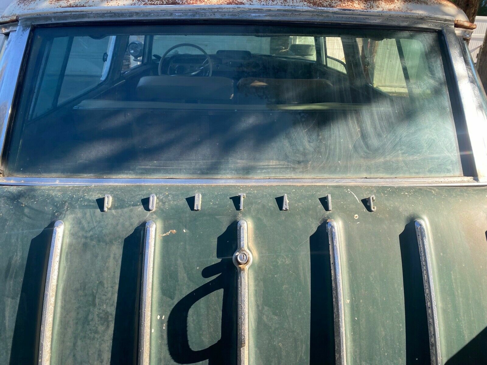 Someone kept this ’57 rolling with a transplanted Pontiac 389 cid (6.4L) V8. Though not original, the 389 wears an air conditioning compressor mated to the wagon’s (apparently) original system. Interestingly, the Safari would have come with GM’s advanced four-speed automatic transmission. Later 389s used the BOP (Buick-Oldsmobile-Pontiac) bellhousing, and the seller’s assertion that only the engine has been swapped would pin this as an early 389, an engine that made its debut in 1959, according to EngineFacts.