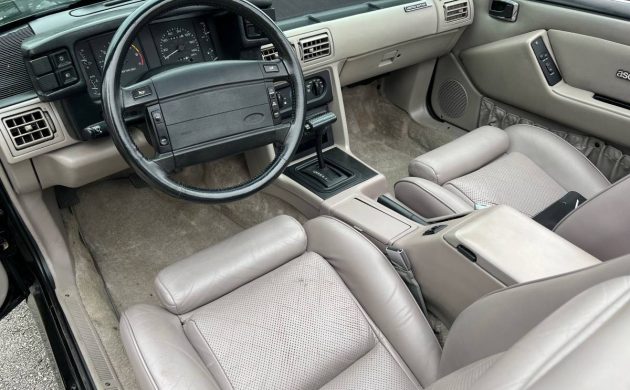 It’s nice, but ugly. The proportions with the top up are off, especially when you compare its side profile to a factory Fox body convertible. It also has GT style front spoiler and side cladding, the market has clearly made a choice and the cleaner look of the 5.0 LX has won, other than the 1993 Cobra.