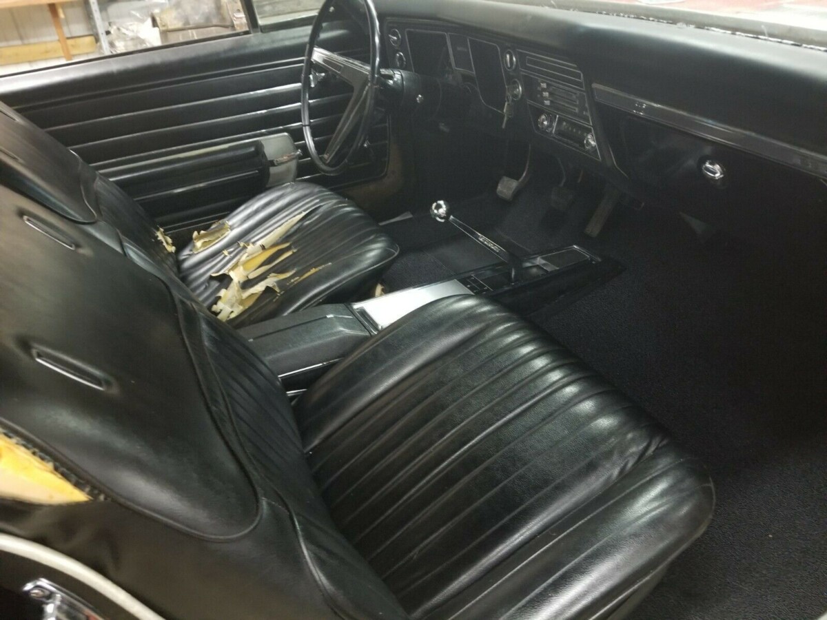 This machine sports the equivalent of a Buick Skylark interior as a labor dispute put production of Chevelle interiors on hold in the Spring of 1968. Because of its dormancy, critters did a number on the upholstery and all the materials had to be removed from the foam to dry out. Rather than putting on new material, the seller reinstalled the original though I would have changed out the driver’s bucket seat because it’s all cracked and torn. But at least new carpeting was installed.