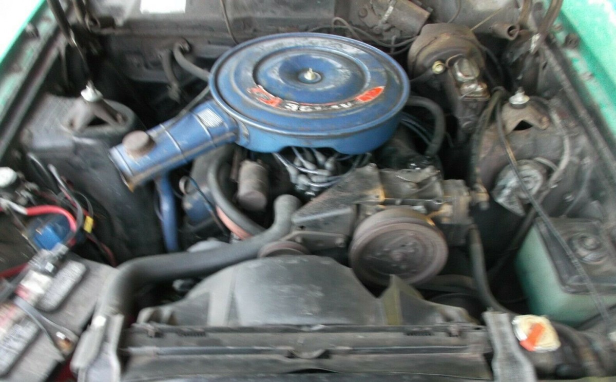 FMX automatic transmission, 3.00 gears in the rear, that trans and the year it was built tell me it’s a 351 Cleveland, missing a belt it looks like, and as you said not a barn stormer in the performance but the potential was there. Nice looking car, that’s for sure, I’d like it better with torque thrusts or some nice period correct hot wheels, and a healthy sounding exhaust.