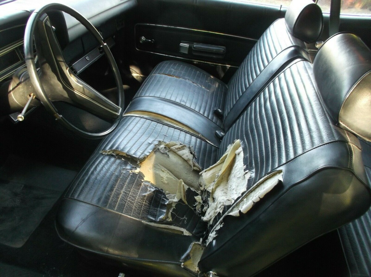 The interior looks well-used for its nearly 90,000 miles, with most of the wear apparently with the front seat. The back seat looks good, as well as one door panel and there may be a crack in the dash pad. On the bright side, the seller says the car runs and drives great, so hopefully, the 351 won’t require any attention. “Drive it while you fix it” is the seller’s mantra.