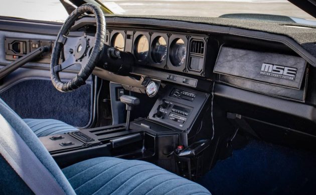 Mecham Racing was started by Dennis Mecham, who had previously been responsible for the DKM Macho T/A, which was a high-performance Trans Am modified by him and his brother during the late seventies. Later, the MSE was made from 1982 to 1985, with production numbers declining each year, so these are fairly rare in the F-Body market. The two-tone blue and silver body appears to be in excellent condition here, with the custom decals and special spoiler letting kids know this was no ordinary Trans Am. Although we don’t get much ownership history, the seller says this one has been garage-kept, and by outward appearances, it seems to have led a relatively sheltered life.