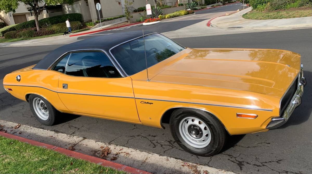 The most interesting aspect of this Dodge – besides its nice condition once it’s cleaned up – is its color: Butterscotch, a goldish hue that was applied to only 5.5% of Challengers that year. If that’s the case, only about 1,500 copies left the factory that way and this one has a black vinyl top and interior to go along with it. We’re told it’s a one-owner car that picked up no rust while it was gathering dirt and grime in the garage/carport where it seemed to live for several years. The odometer reading at 76,000 which could be accurate.