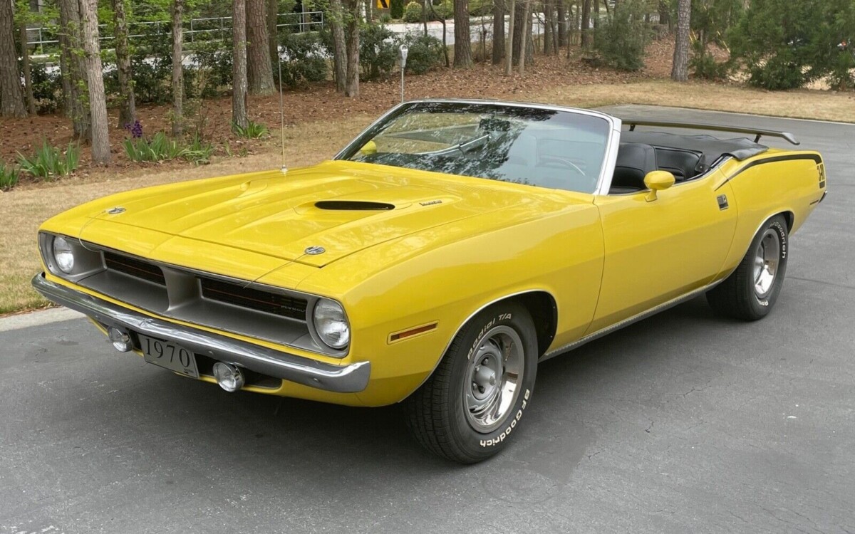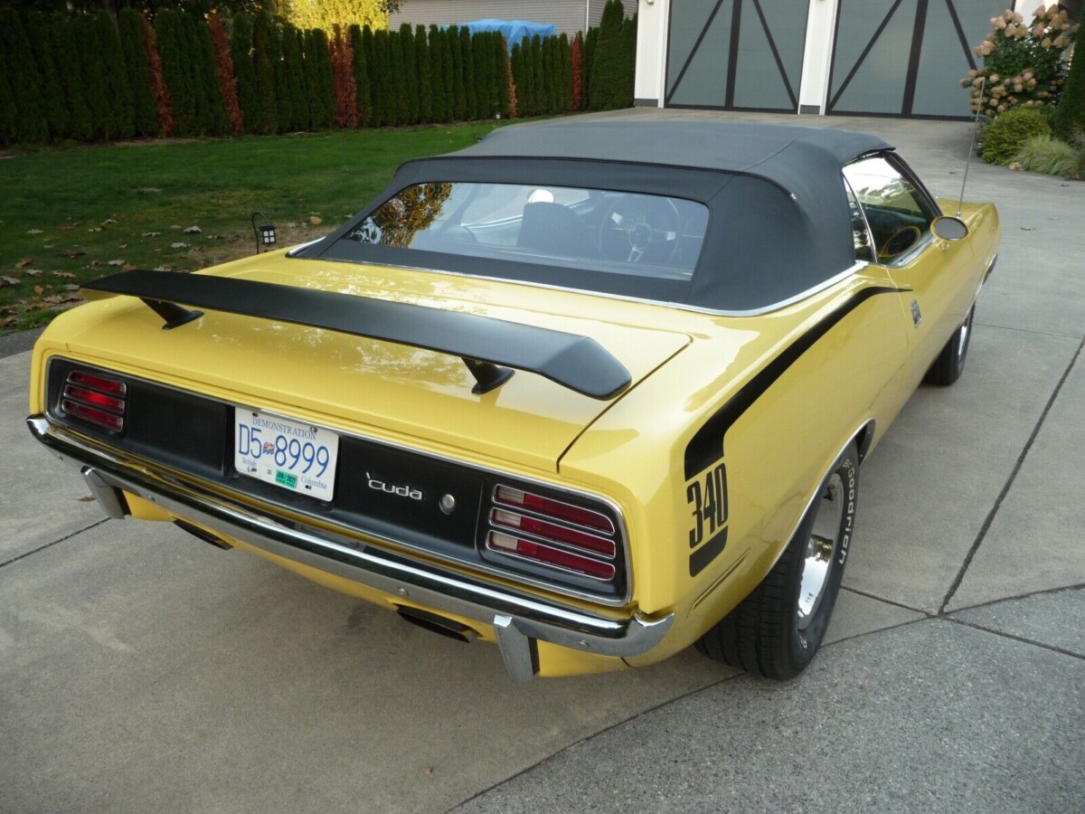 The cowl tag confirms the 340, transmission, and paint color. So we assume this is a real deal car as the seller proclaims. Given the low production numbers for these ‘Cuda drop-tops, how many of the 155 like this one could still exist? Perhaps this is even the last good one out there finished in Lemon Twist. The interior looks solid, and the trunk floor is squeaky clean. The drop-top is power activated and the ‘Cuda comes with the Rally dash package. Everything is said to be in working order except for the clock. Prior to the car migrating to Canada two years ago, it did time in Atlanta.