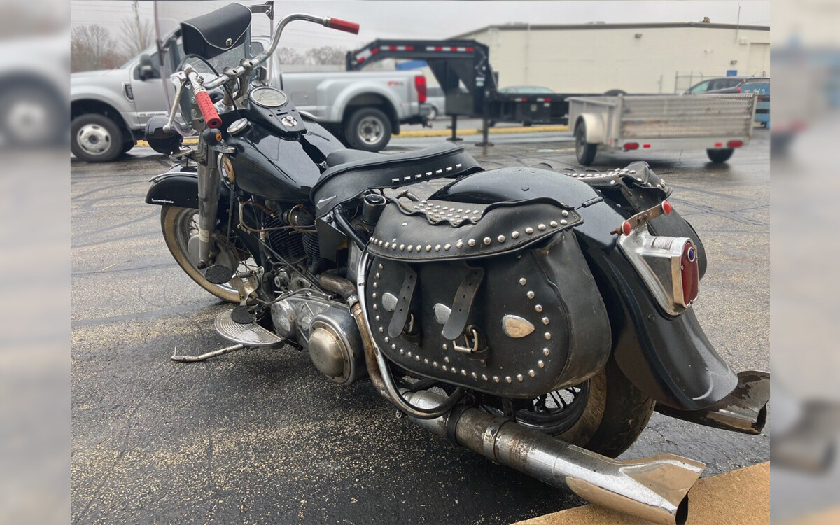 Is this a good-looking Harley? Of course, nobody is debating that. I’d guess that even people who don’t like Harley-Davidson motorcycles (for some reason) may still like the look of this bike. Come on, it’s a vintage black Harley with studded black leather bags, fuhgeddaboudit! It has a steampunk look to it, and there’s a good reason for that, at least for Harley-Davidson scholars. The seller says that it’s a conglomeration – well, they call it an “old vintage rebuild” – of a ’38 Knucklehead frame, a ’50s Panhead, and the original ’57 tank-shift FLH. This example has a solo seat and those leather bags are great.