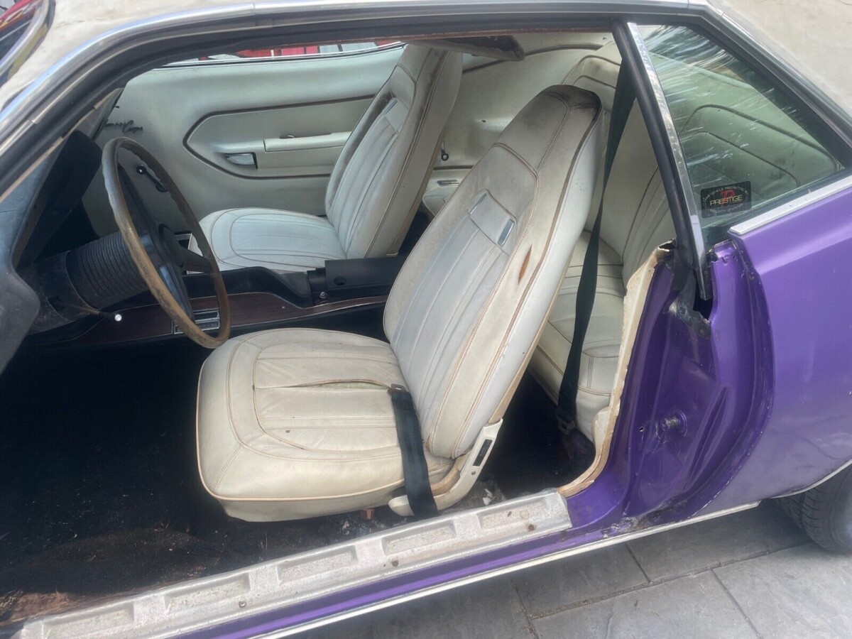 Barracuda production in 1970 called for 48,867 cars of which 7,230 were the Gran Coupe as a coupe (a convertible was also offered with the same name). The lion’s share of them was assembled with the 318 V8, which seems a more logical choice with the audience the cars attracted. However, a few hundred Gran Coupes with a 383 were also built. The original owners of the car narrowed the number like it that was produced to less than 182 units by specifying the Hi-Impact “purple” paint of which only 10% of Barracudas received, and a white vinyl top. This combination makes the seller’s car one of a few that have likely survived.