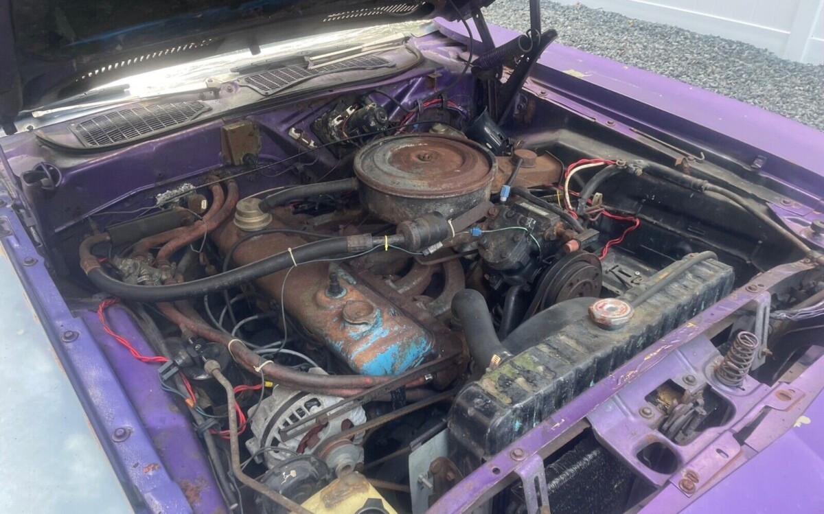 The Slant-Six was one of the most popular motors ever built by Chrysler. It’s not locked up from age or lack of use, but we’re told the engine does crank and spin when a battery is applied. However, the seller says, “the alarm keeps going off, so the car will not start” (not sure what that means, so perhaps there are electrical problems with the Plymouth). Once restored, this Barracuda will be a cool anomaly as the In-Violet paint (known as Plum Crazy at Dodge) will draw a lot of attention and on-lookers will be surprised not to find a V8 stuffed under the hood.