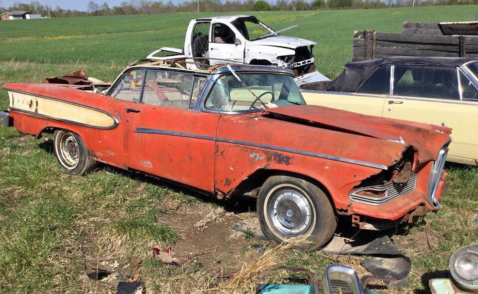My great grandfather briefly sold Edsels in Northeastern Ohio during his later years of retirement. Rust from salt was a problem for all vehicles there including the 1959 Chevy my dad drove to work in the big city. Driving it on the way to trade it in one late evening, one of the headlights fell out and way to the dear. It hung by the wires but the dealer took it on trade anyhow. A troubling side event for us that night but we traded that 1959 Chevy Biscayne 4 door for a 1956 Ford wagon for my mom’s car and drove that one home!