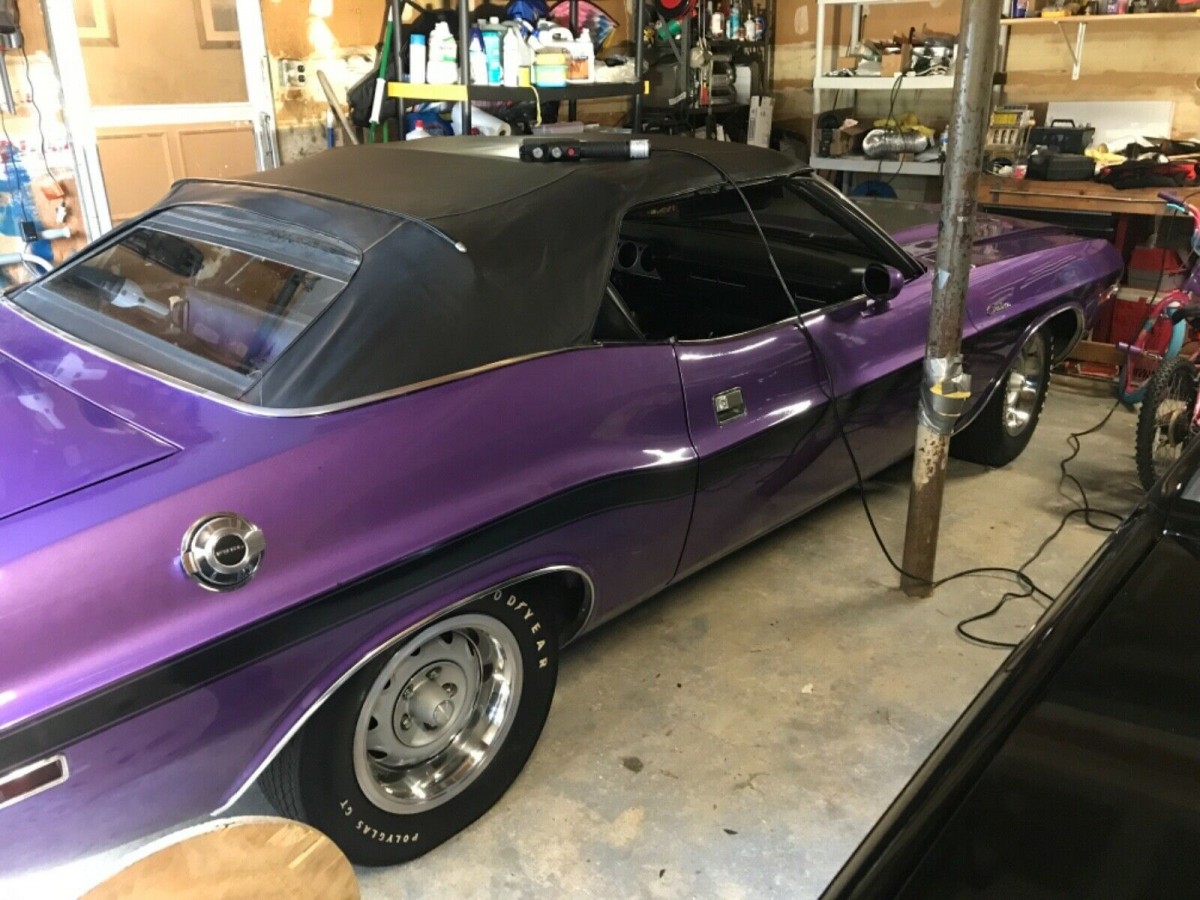 Though not as commercially successful as the Ford Mustang or Chevy Camaro, Dodge built 77,000 Challengers in the car’s first year, 1970. Of those, 18,500 included the performance-oriented R/T model (Road/Track). When you drill down to convertibles with the 383 HIPO V8 and 4-speed manual transmission, just 138 drop-tops were produced. So, when the seller says his car is one of fewer than 20 built, that’s quite plausible. Paint color FC7, aka Plum Crazy, was the most visible of all the Hi-Impact paint colors that Chrysler would offer on certain Dodge/Plymouth products.