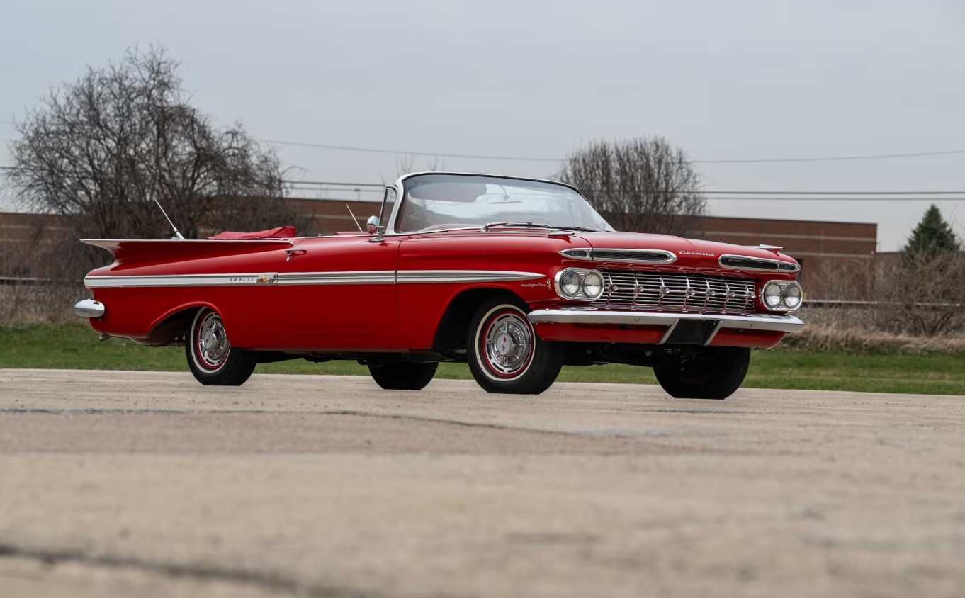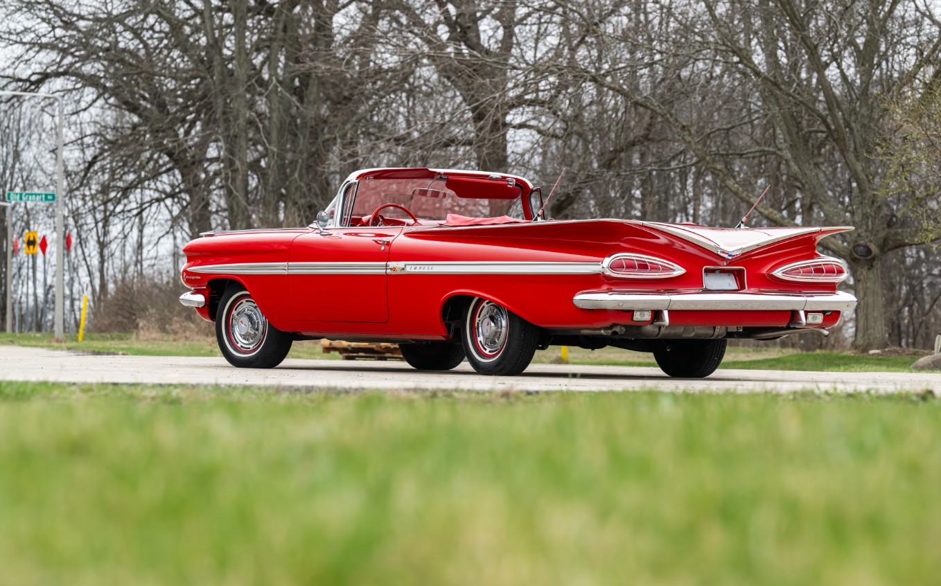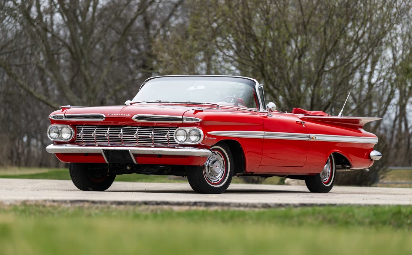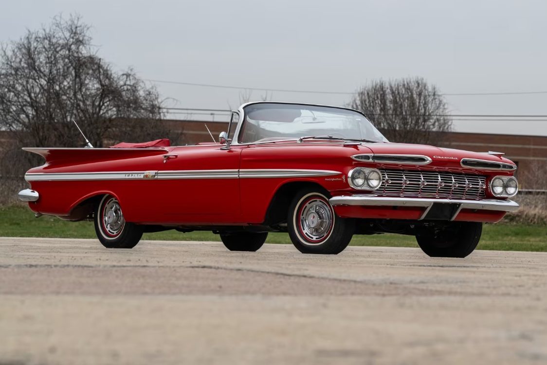 Chevrolet introduced its Second Generation Impala in 1959, with the latest model remaining on sale for two years. The fin craze was at the literal height of its power in 1959, with those found on the Cadillac and various Chrysler models reaching an extreme. Chevrolet blessed the Impala with fins, but chose to follow a more horizontal path to create a distinctive look resembling arched eyebrows. The seller states that this classic underwent a meticulous restoration in 2025 and has only clocked twenty-five miles since the work ended. Therefore, the fact that it presents so beautifully is unsurprising. The Roman Red paint shines like a mirror, covering laser-straight panels. The tight and consistent gaps demonstrate an eye for fine details and are probably better than they were when this car rolled off the line. There is no evidence or mention of rust, and the bright trim and glass look perfect.