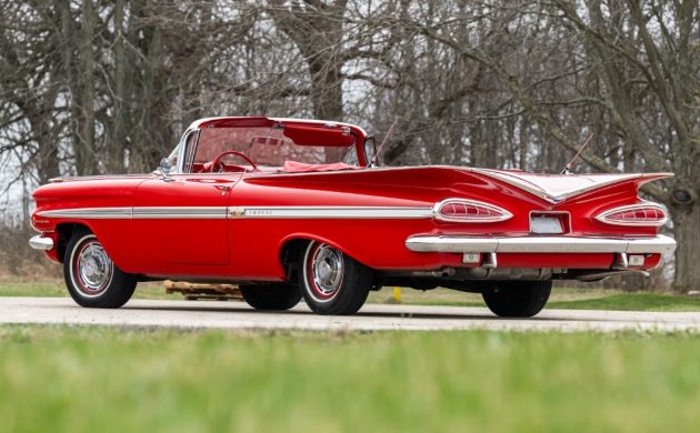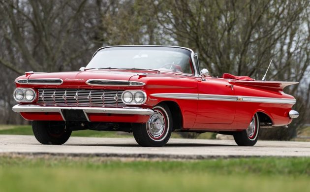 Does the perfect classic actually exist? Is there a car with a combination of looks, condition, rarity, and specifications that places it seemingly beyond criticism? Those are the questions posed by this 1959 Chevrolet Impala Convertible. Not only does it present exquisitely following a meticulous restoration, but it is believed that its mechanical specifications make it extraordinarily rare. I must say a big thank you to Barn Finder Mitchell G. for spotting the Impala that is listed here at Mecum Auctions. It is set to cross the block in Indianapolis, Indiana, on Friday, May 16th.