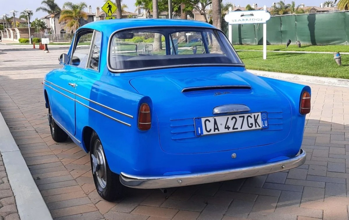 Just when you think you have seen them all…the Italian auto industry can still surprise and delight. As far as the finish goes, could this really be the original color? From my observation of Fiats and other Italian cars of the time I’m thinking not. I’ve seen light baby blues and pastels and subtle metallics in dark blue and silver. I never saw a primary blue of his hue and intensity until the early 1970s when Earl Scheib offered it as part of the limited palette available to customers wanting their cars painted for $49.99. It really looks like a color from the wrong era and does complement the design of the car. Nothing I can think of was this color blue in 1963. Correct e if I dwell in the slum of ignorance.