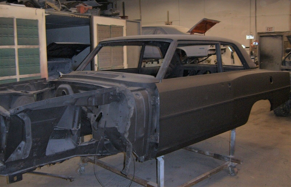 I am curious about the suspension upgrades. I built a ’64 Chev II in my stock – car days with a 327 built to L79 specs and had to go with a front sump pan and pump to clear the front steering suspension. Maybe during the rebuild it received a front clip from a different donor car (?).