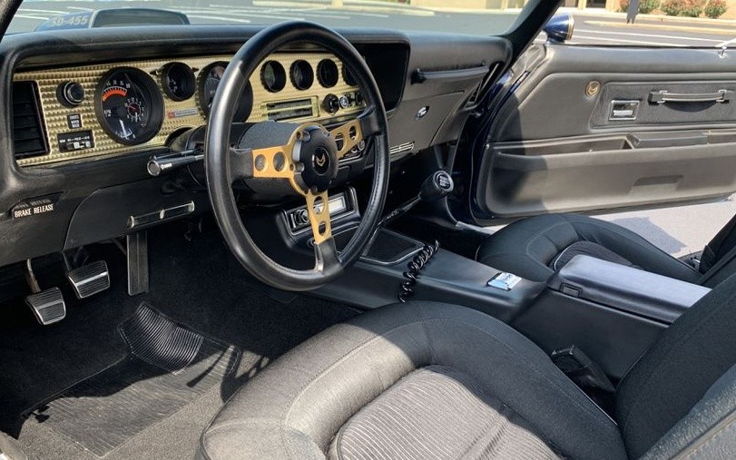 Nice looking car with a rare engine. Just wonder if it would be worth more if left original. Looks like it has the ‘76 special edition decal package minus the Pontiac 50th anniversary emblem along with the gold spoke steering wheel and dash