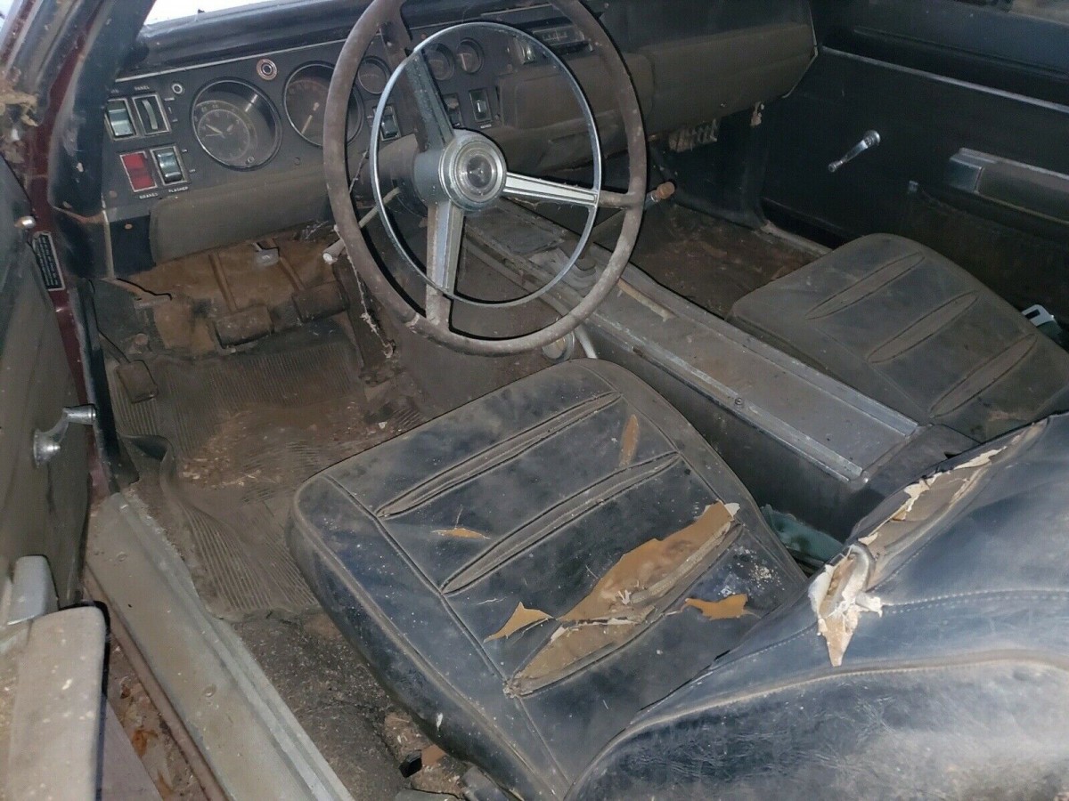 This maroon car has a great color combo not normally seen back in the day. The seats appear to be ’69 specific as the pleats are different and the side marker on the left fender show at least that item to be ’69 as well.