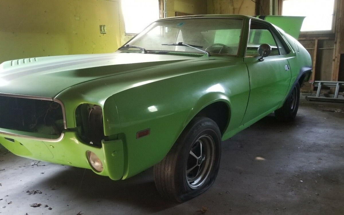 Most of the Big Bad Green paint looks decent, but it surely must be a repaint. The driver’s side rear quarter apparently was damaged or rusty with a repair underway. It will need to be finished or another rear quarter sourced as a replacement. There also may be a big hole in the rear floor pan. Items that also appear to be missing are the headlight and taillight assemblies, radiator, most of the parts that attach to the motor, and door panels. If any of these items have survived, they’re not mentioned or appear in a photo. A solid AMX may very well be the most valuable AMC product from the 1960s. Hagerty estimates $35,000 at the high end and add 20% for the Big Bad Package, if this car had one. But the car offered for sale seems to be a rolling shell and chassis, but a nice one at that.