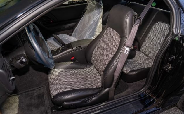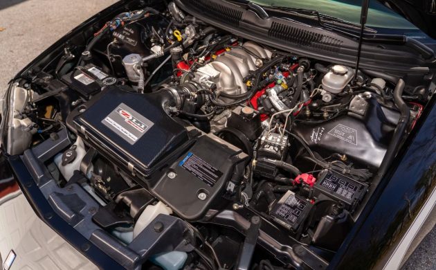 The Camaro emerged from the factory loaded with plenty of options, but the GMMG Package added a few extra. These included a Hurst short-throw shifter, silver-faced gauges with ZL1 Supercar logos, special floor mats, a unique key fob, dash and numbered door jamb plates, and ZL1 Supercar numbers on the glass and mirror. Factory features include air conditioning, power windows, power locks, a six-way power driver’s seat, power mirrors, cruise control, a leather-wrapped tilt wheel, and a premium stereo system with a 12-disc CD stacker and eight speakers. The interior condition is consistent with the rest of the vehicle, with some surfaces retaining their factory protective plastic. The leather and houndstooth cloth trim is in as-new condition, and this interior needs nothing.
