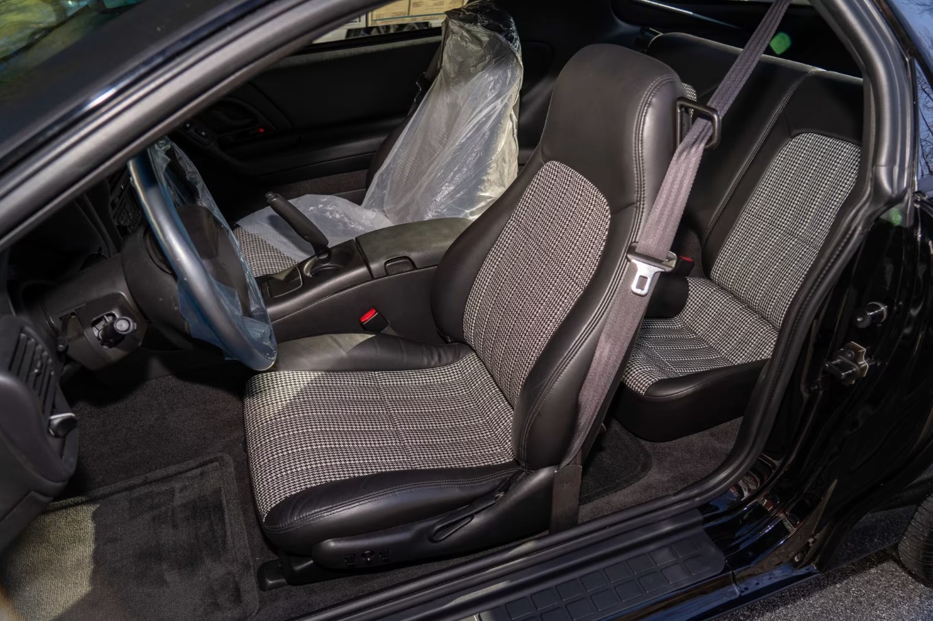 The Camaro emerged from the factory loaded with plenty of options, but the GMMG Package added a few extra. These included a Hurst short-throw shifter, silver-faced gauges with ZL1 Supercar logos, special floor mats, a unique key fob, dash and numbered door jamb plates, and ZL1 Supercar numbers on the glass and mirror. Factory features include air conditioning, power windows, power locks, a six-way power driver’s seat, power mirrors, cruise control, a leather-wrapped tilt wheel, and a premium stereo system with a 12-disc CD stacker and eight speakers. The interior condition is consistent with the rest of the vehicle, with some surfaces retaining their factory protective plastic. The leather and houndstooth cloth trim is in as-new condition, and this interior needs nothing.
