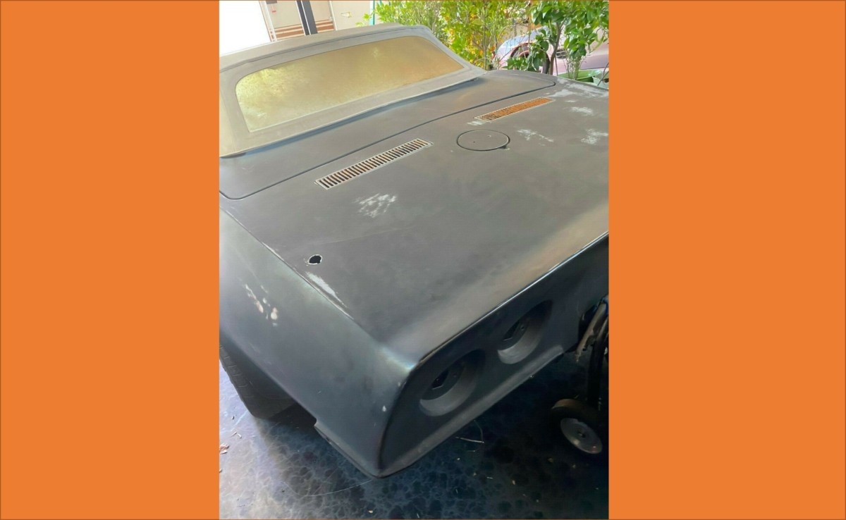 No mention of the parts not on the car (and there is a ton). But, per the seller, all ya have to do is “install new brakes, new interior, new paint, new chrome and done”. DIY gonna be $1k for brakes, $5k interior, $15k paint, $5k chrome (assuming you have something to chrome) and then lets throw in tires for another half a thou. Hopefully the engine runs decent, the clutch pedal on the floor is there because the linkage is apart, the trans shifts smoothly, and the rear end doesn’t whine. Oh, yeah, lets hook up the e-brake, put on new exhaust, rebuild the vacuum wiper door, and fix up the AC for another couple grand. And, unless you’re going to put the top down for good, toss in another half a thou.