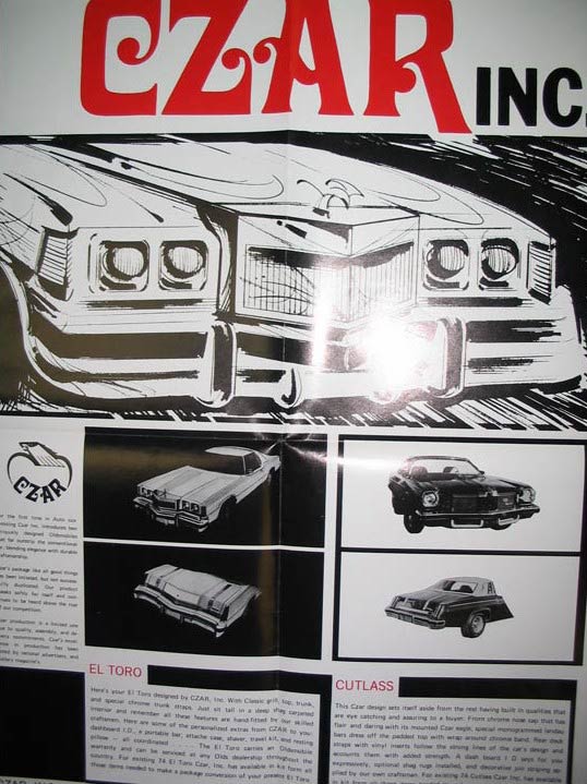 There isn’t a lot of information on the interstream about the El Toro other than they were made by a company called CZAR based in the Philadelphia, Pennsylvania area. They weren’t actually “made” by them, but they customized Toronados into what you see here, and for that, I personally thank them, whoever they were. Yeah, it’s mostly doo-dads, jim-cracks and other things fastened to the outside of a regular Oldsmobile Toronado but this was just after the original Super Fly movie came out in 1972, which by the way had one of the best tag lines in movie history: “A dude with a plan to stick it to The Man”, not to mention a great movie poster.