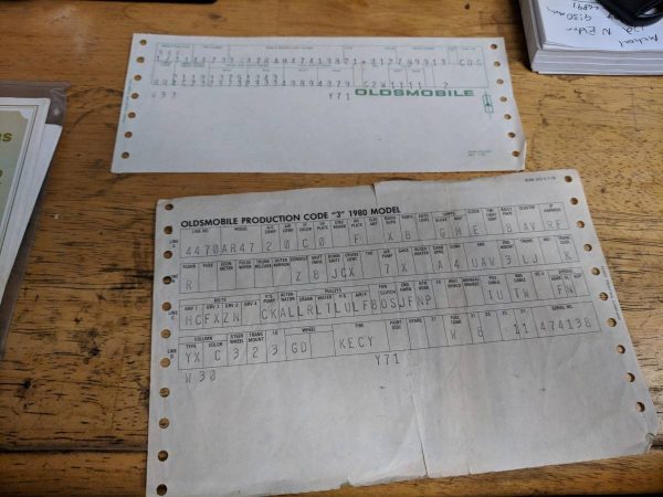 Someone did change the tail lights on this one, the ’80 has a colored strip down the middle, black or white depending on the color, it looks legit I couldn’t read the VIN on the broadcast sheet but if it doesn’t start out 3K47RAM than it’s not a ’80 442. I have one of these cars, mine is White/Gold like this one. it’s one of 346 in that color, the rest were black/gold. They made a total of 886 in ’80. something of interest on these cars, I have a small registry of them going back 15 years, most of them were shipped and sold new in Canada. Mine was special ordered by a Oldsmobile salesman at Lokey Motors in Clearwater, Florida to use as his personal car