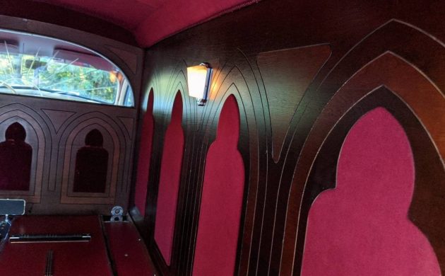 Word on the street is that this one, including the hand-carved wooden side panels, was produced by a funeral coach building company called Sayers and Scoville. Branded as S&S for short, this business is still operating today out of Lima, Ohio. This particular design is apparently known as the Damascus, and that side sculpting would be hard to beat if it’s an intense goth look you’re seeking. I wasn’t able to positively confirm the numbers, but the seller says only seven of these were ever made, with just four remaining.