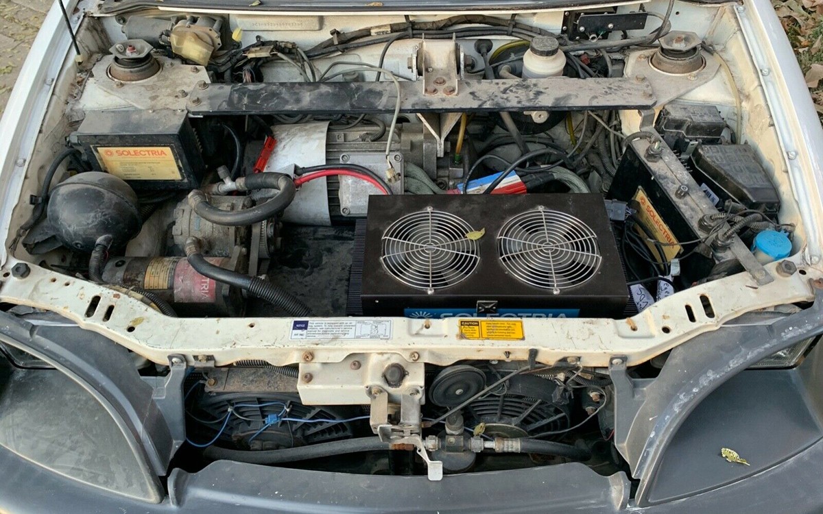 Only around 400 of the Solectria Force Geo Metro conversions were made and they’re fairly typical in having around a 40-mile range. That’s not ideal in the era of 250 to 300+ mile ranges and coast-to-coast charging stations, but for most regular commuting duties, 40 miles is more than enough range. Municipalities and other governmental agencies typically bought these cars more so than the average private consumer. The interior looks great in this car both front and also the rear. You can see the unusual controller on the center console but the seller doesn’t provide any detailed photos of that, unfortunately.